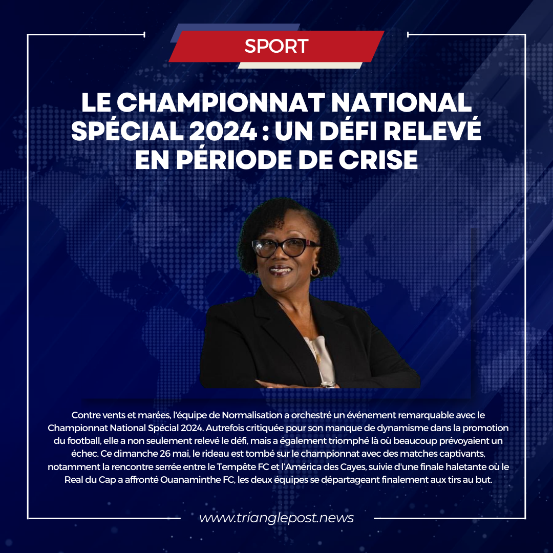 Contre vents et marées, l’équipe de Normalisation a orchestré un événement remarquable avec le Championnat National Spécial 2024. Autrefois critiquée pour son manque de dynamisme dans la promotion du football, elle a non seulement relevé le défi, mais a également triomphé là où beaucoup prévoyaient un échec. Ce dimanche 26 mai, le rideau est tombé sur le championnat avec des matches captivants, notamment la rencontre serrée entre le Tempête FC et l’América des Cayes, suivie d’une finale haletante où le Real du Cap a affronté Ouanaminthe FC, les deux équipes se départageant finalement aux tirs au but.