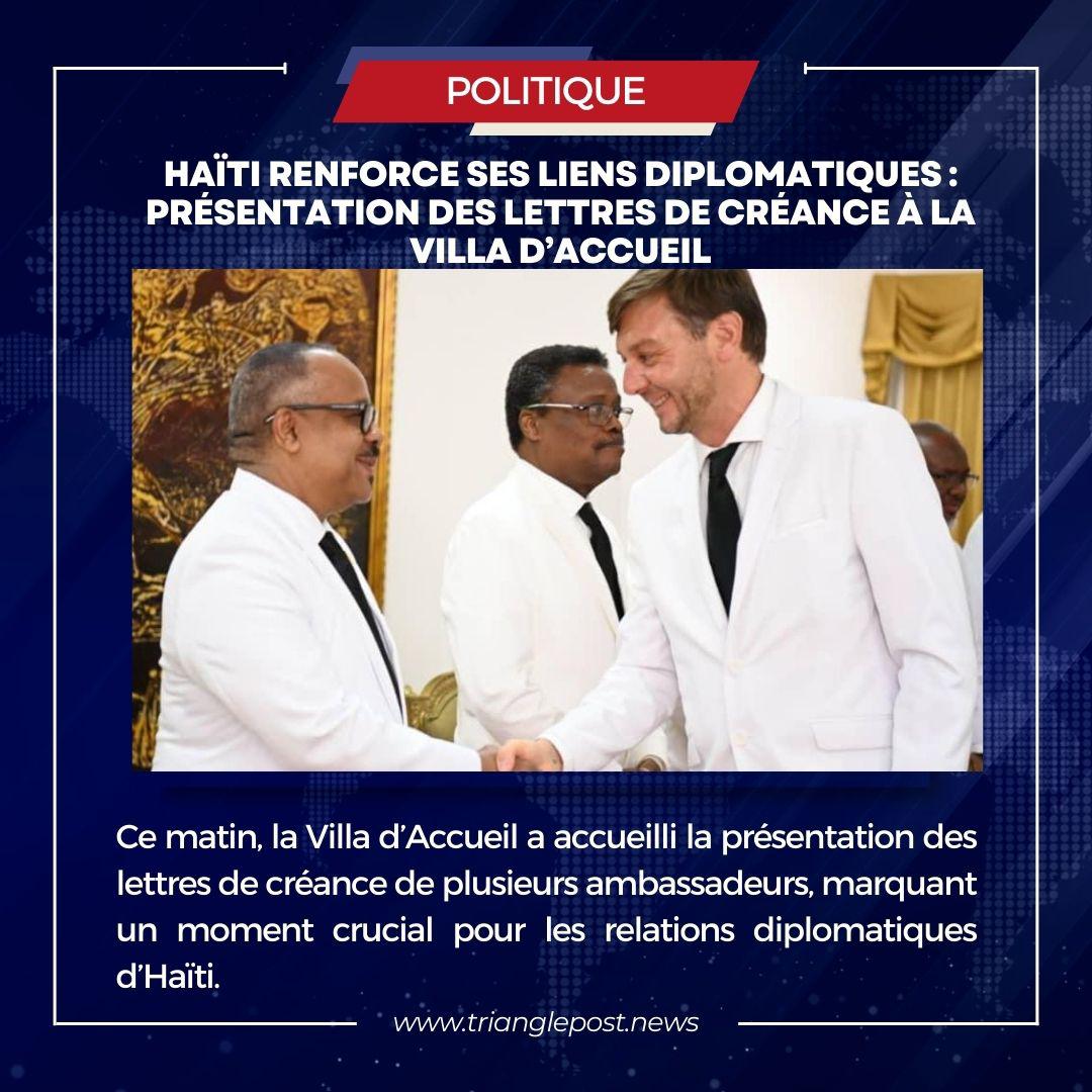 Ce matin, la Villa d’Accueil a accueilli la présentation des lettres de créance de plusieurs ambassadeurs, marquant un moment crucial pour les relations diplomatiques d’Haïti.